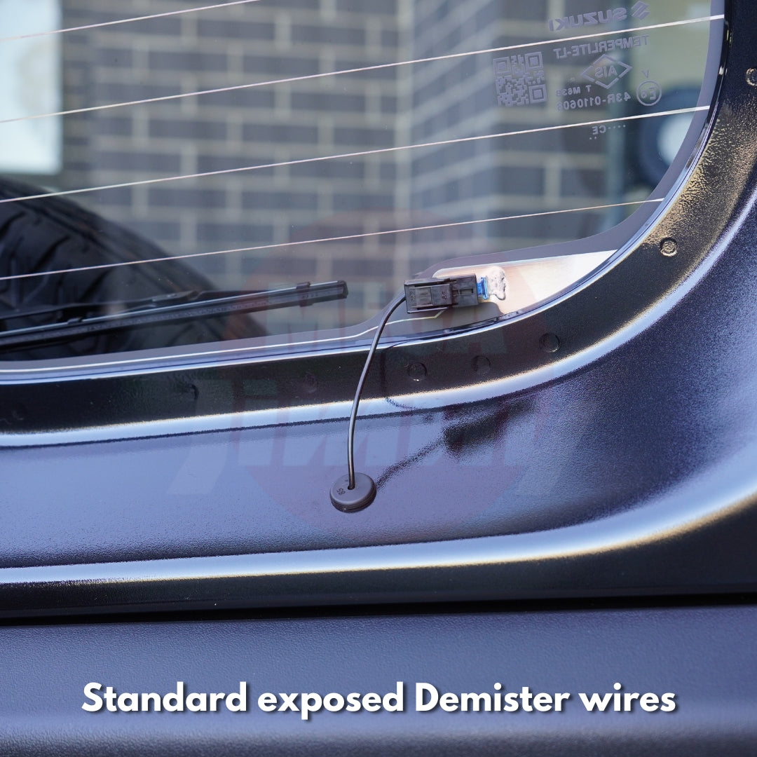 It goes without saying, Suzuki really could have covered up those rear window demister wires from the factory a little better.