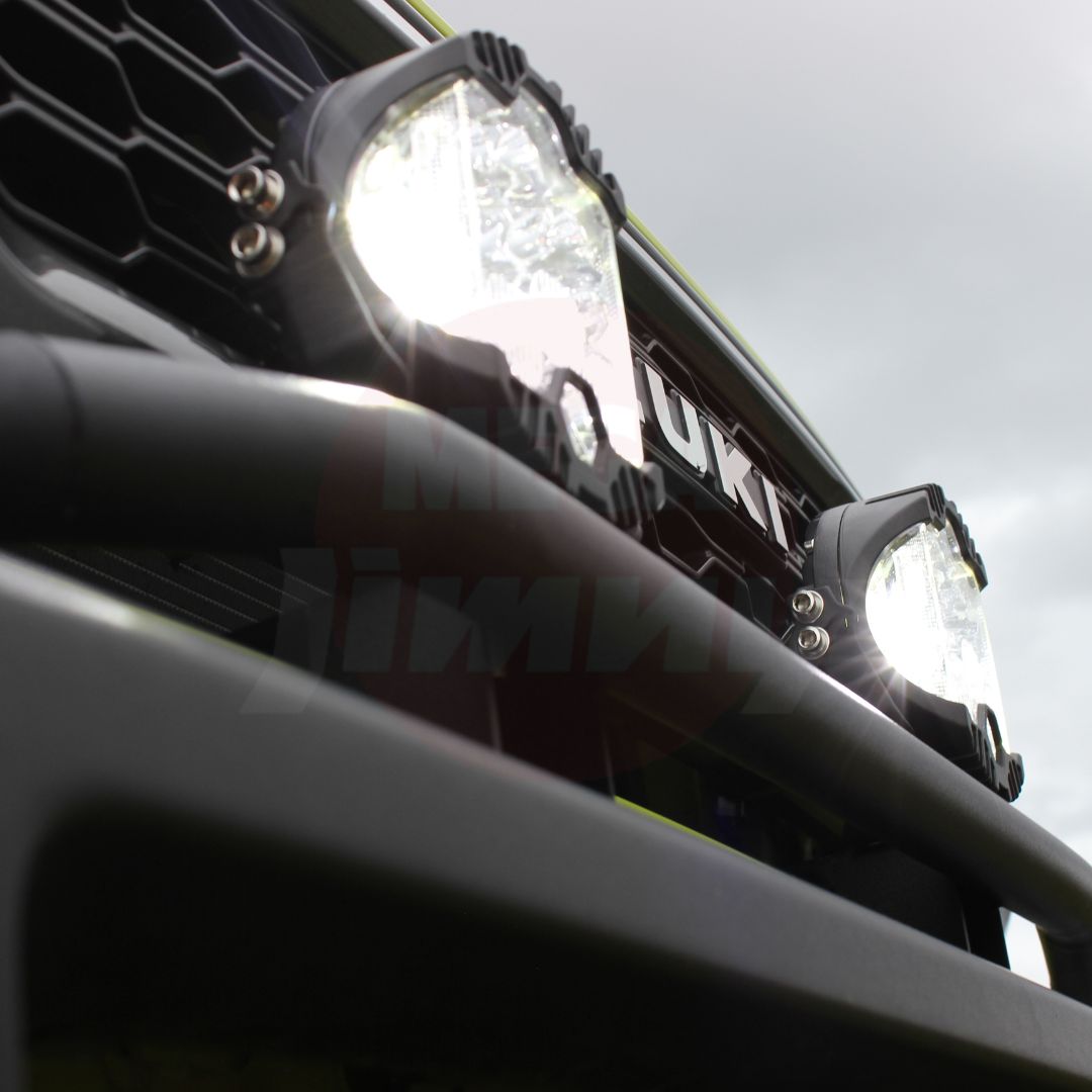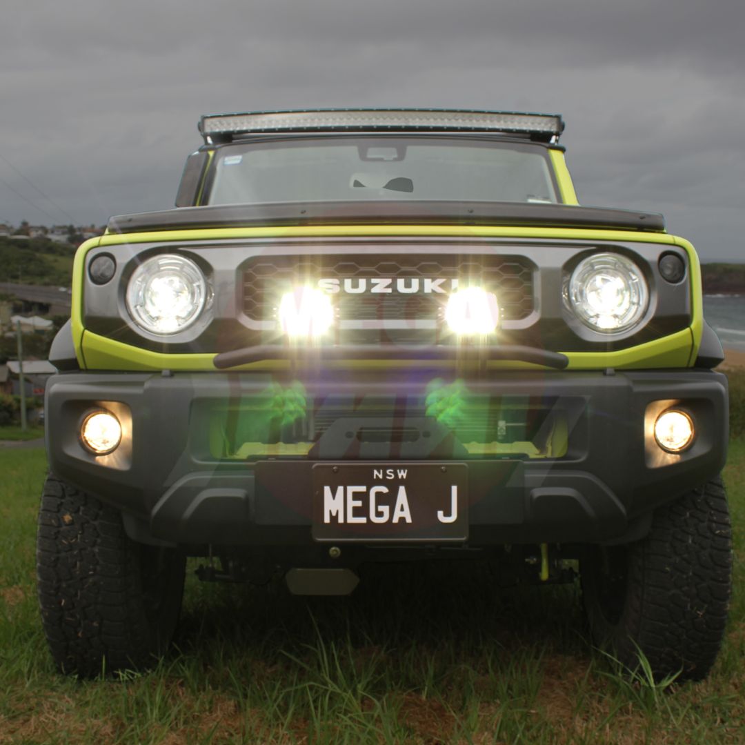 There really isn't anywhere easy to mount any additional lights on our beloved Jimny's - You're either forced to run a rooftop lightbar kit or you need a heavy bull bar to mount some spotties...