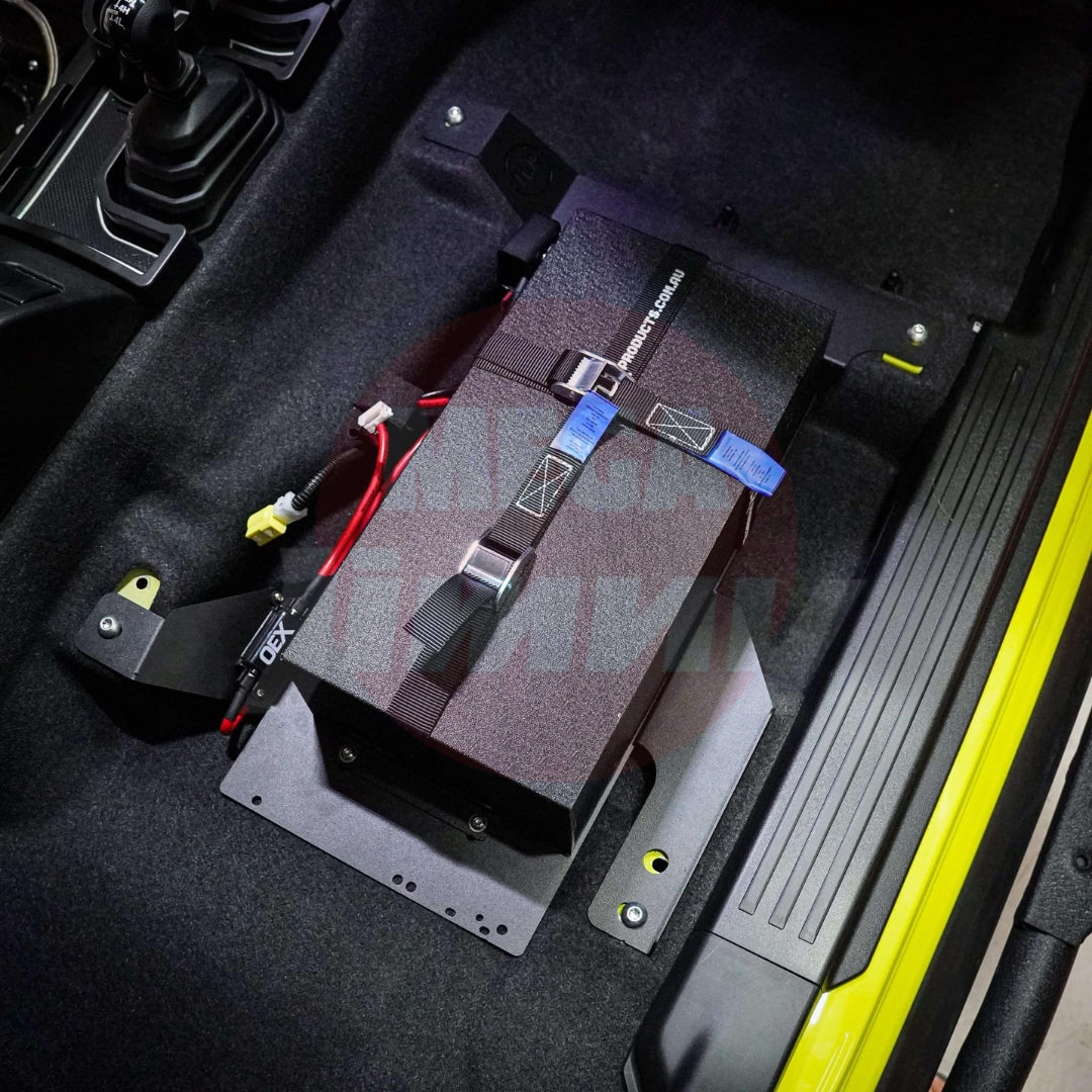 As can tell by the photos of our Jimny, when using a TLR Slimline under seat battery tray (found here) this battery fits perfectly under the drivers side seat to make sure you're not loosing any precious interior space.