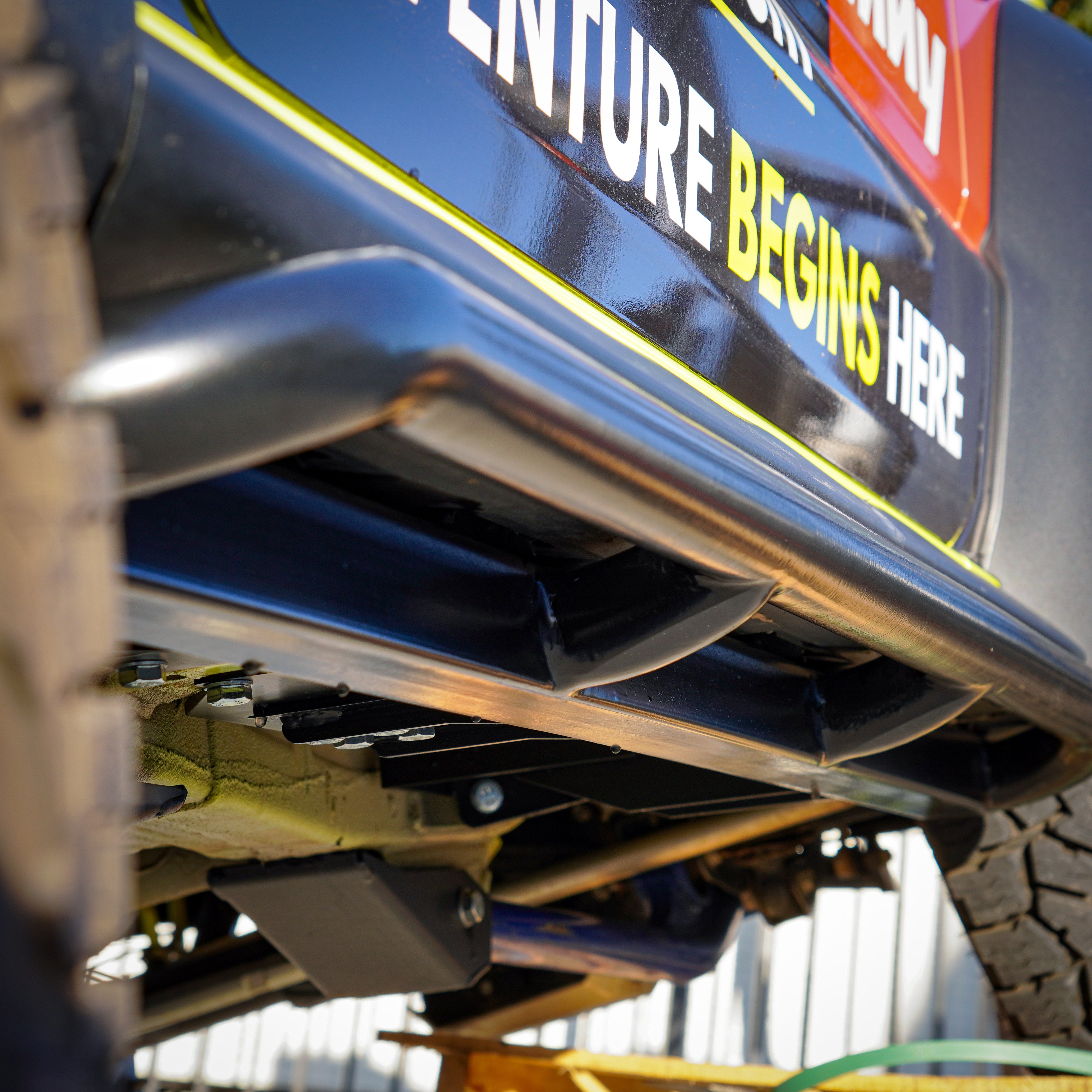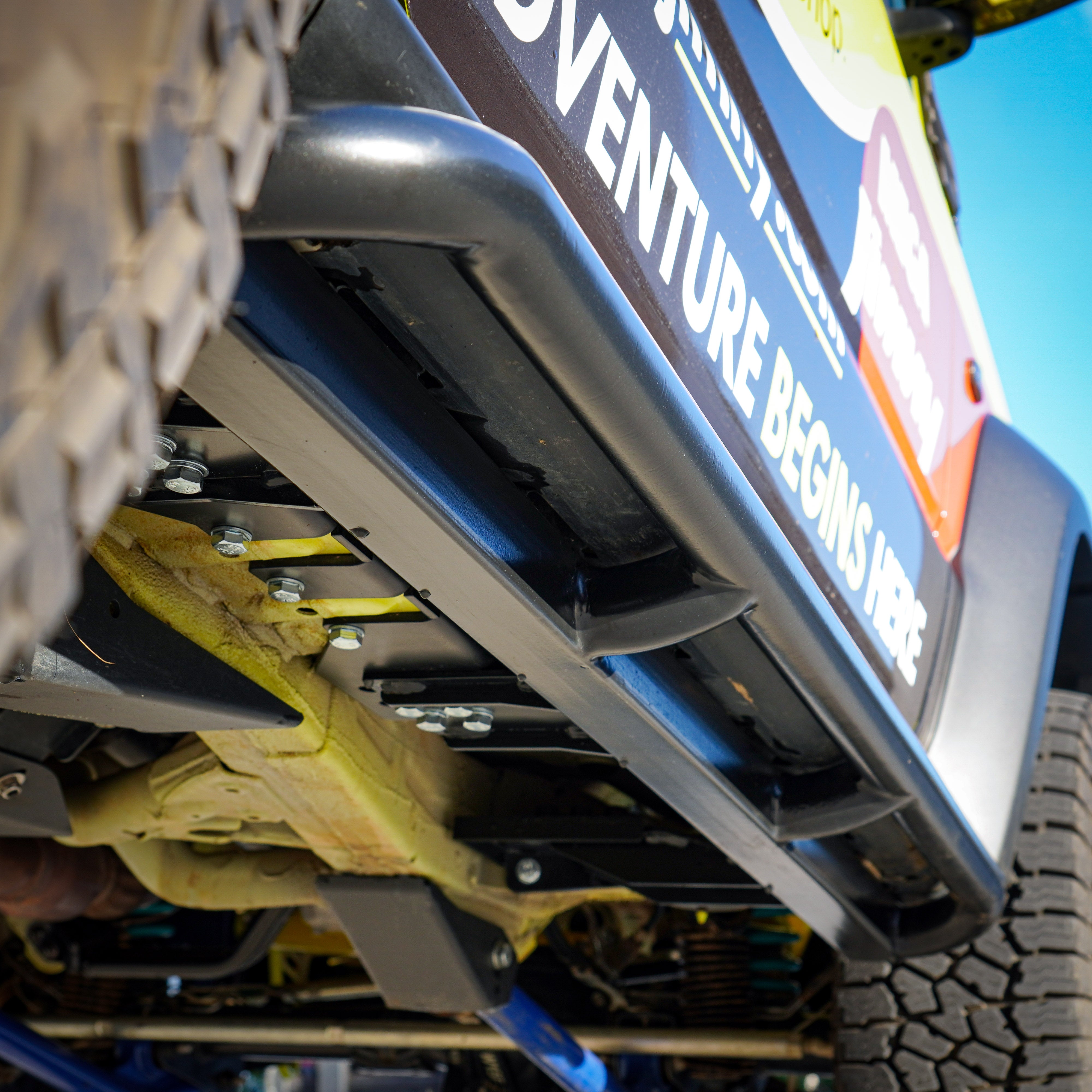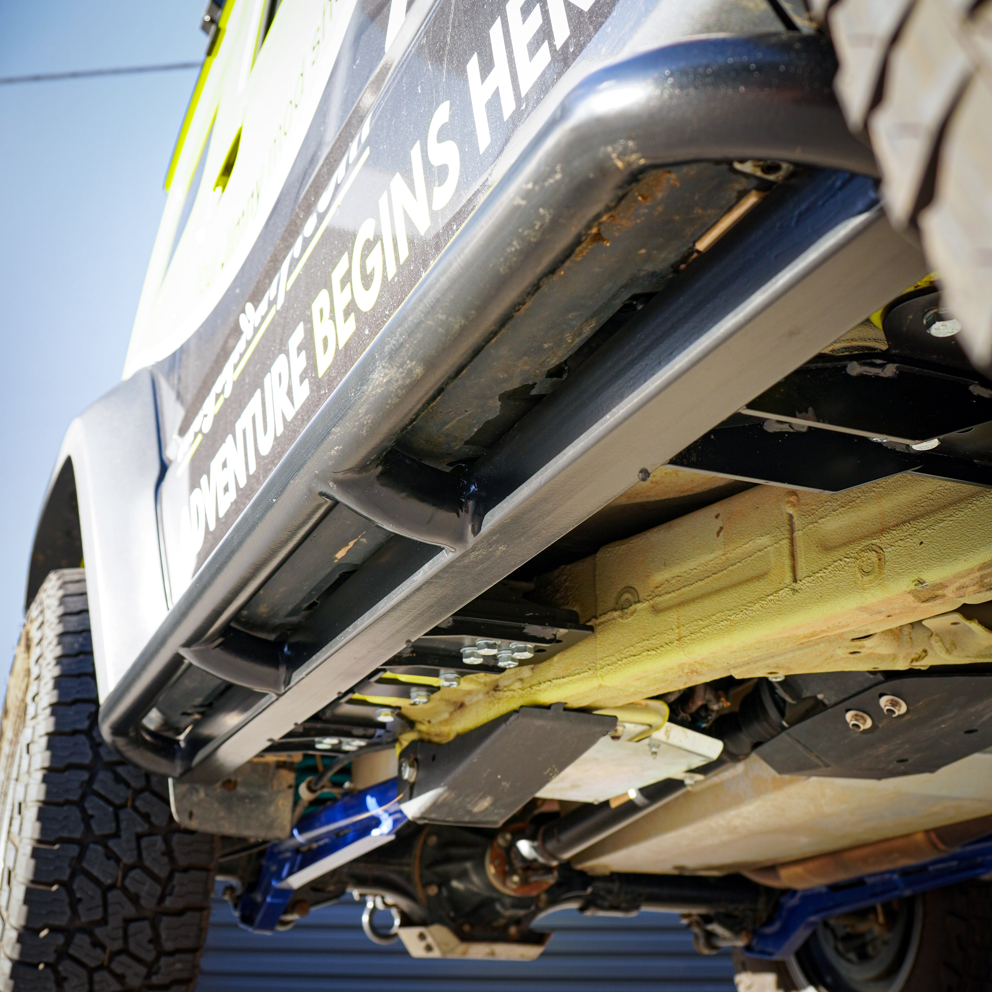 Ultra High Clearance: Our rock sliders give clearance like no other off-the-shelf Jimny rock slider on the market. By utilising curved inner CNC bent & notched tubing, we can position the rock slider body only millimetres away from the plastic sill panel, making fitment super tight and super high!