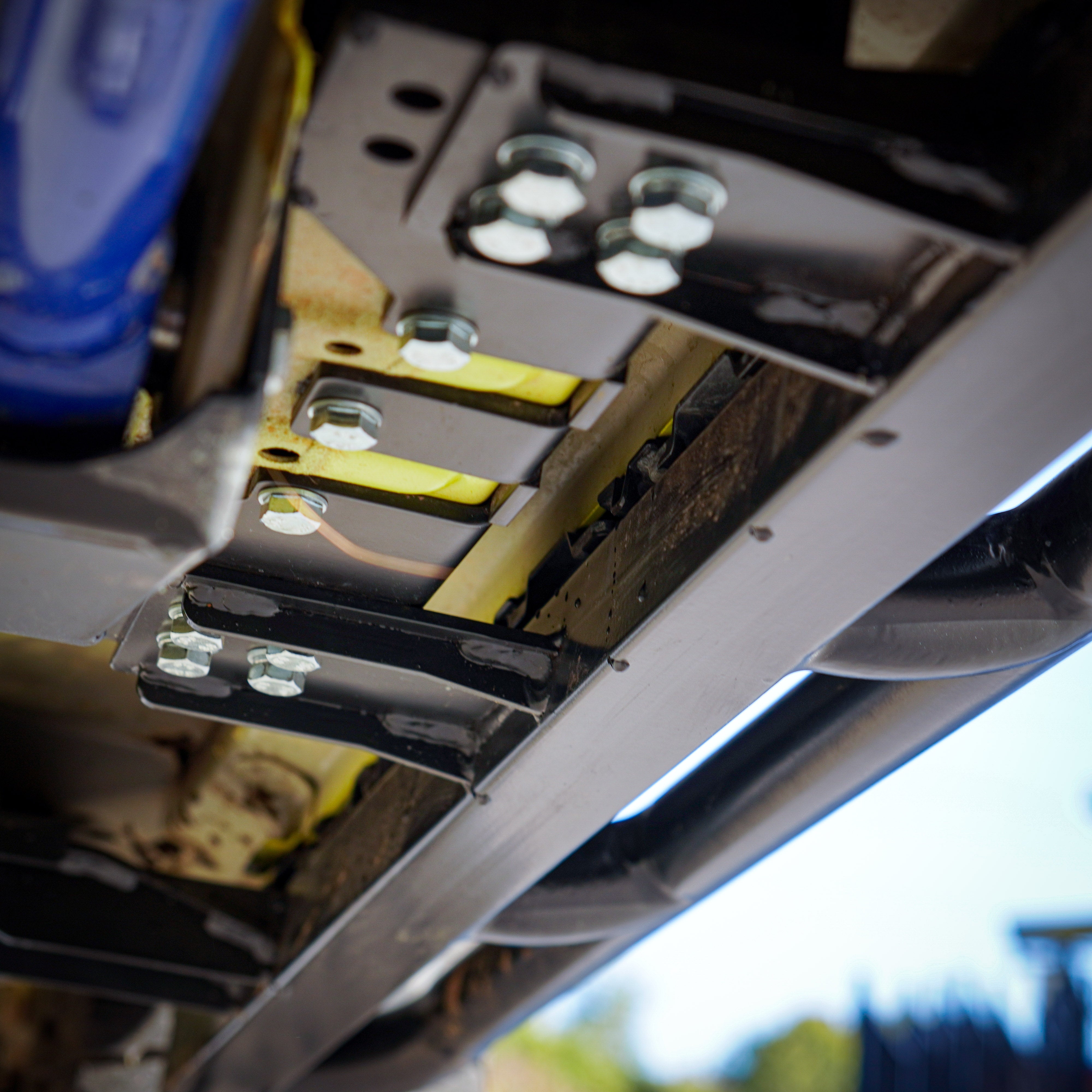Bolt on/Bolt off slider design - Our rock sliders use 12 x M12 bolts to secure the sliders to their brackets. On the back side of the mounting brackets are M12 nuts that have been welded on to every rear bolt hole to make installation and removal of steps hassle free.