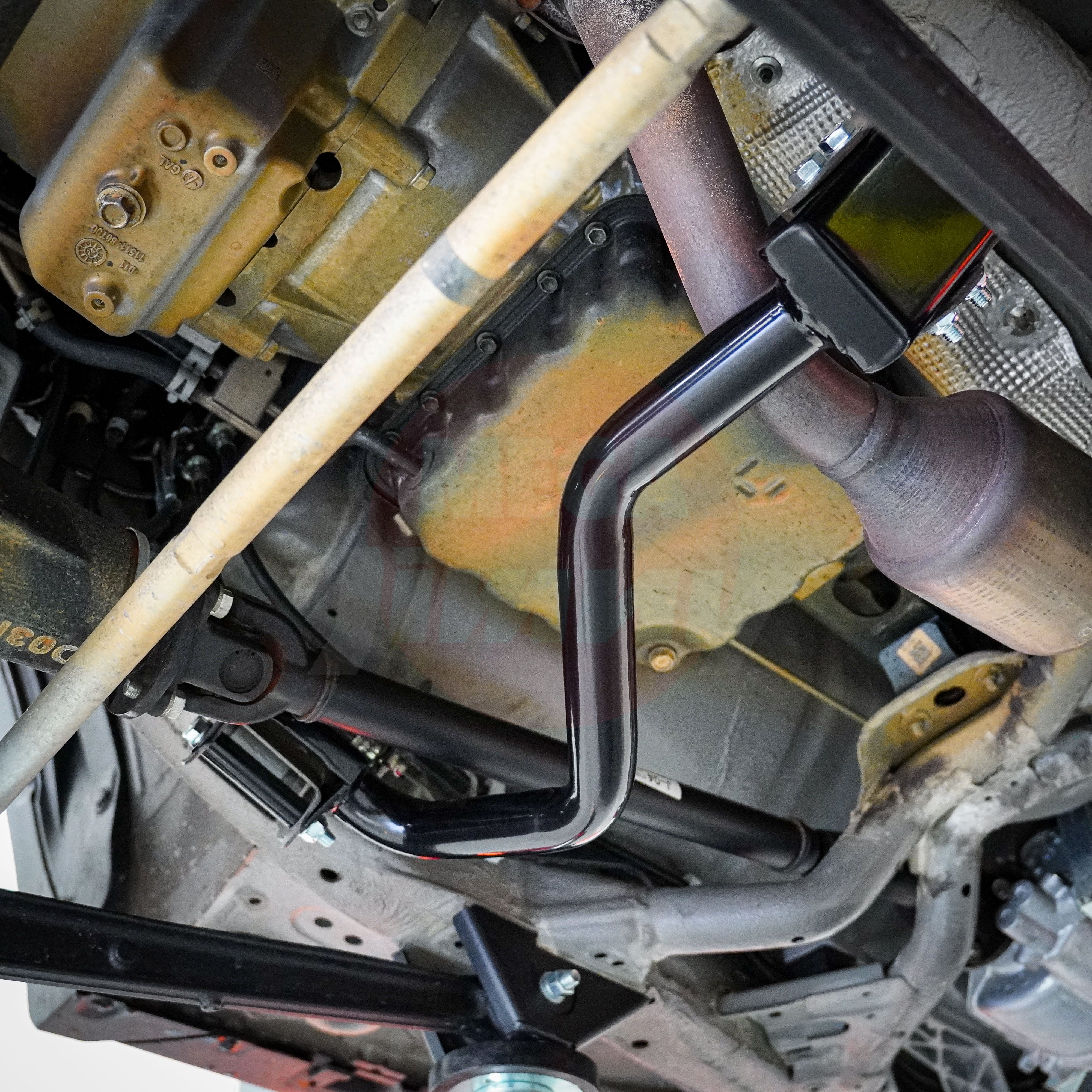 When a 2" or larger lift kit is installed on a Jimny, the front driveshaft can sometimes contact the OEM underbody crossmember when articulation happens, which can result in expensive repairs or worse - being stranded out on the track with a broken car.