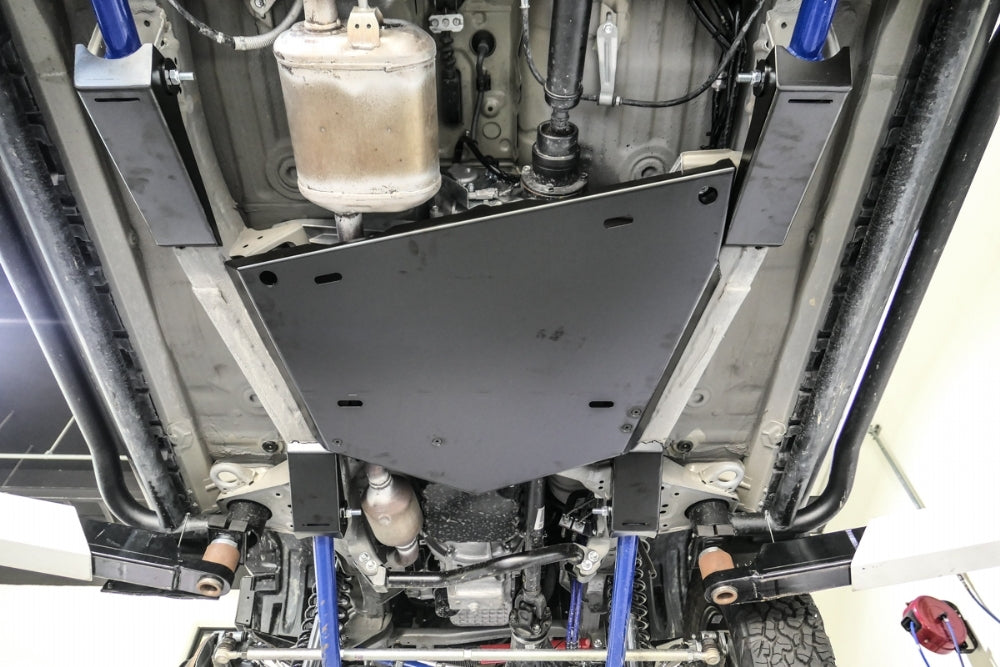 Hardrace control arm/radius arm skid plates offer ultimate underbody protection to your Jimny. The shields are constructed from ED coated high strength steel to provide superior strength and durability, preventing damages to the control arm/ radius arm mounting brackets while off-roading. The shields bolt into existing factory mounting holes and there is no drilling required for installation.