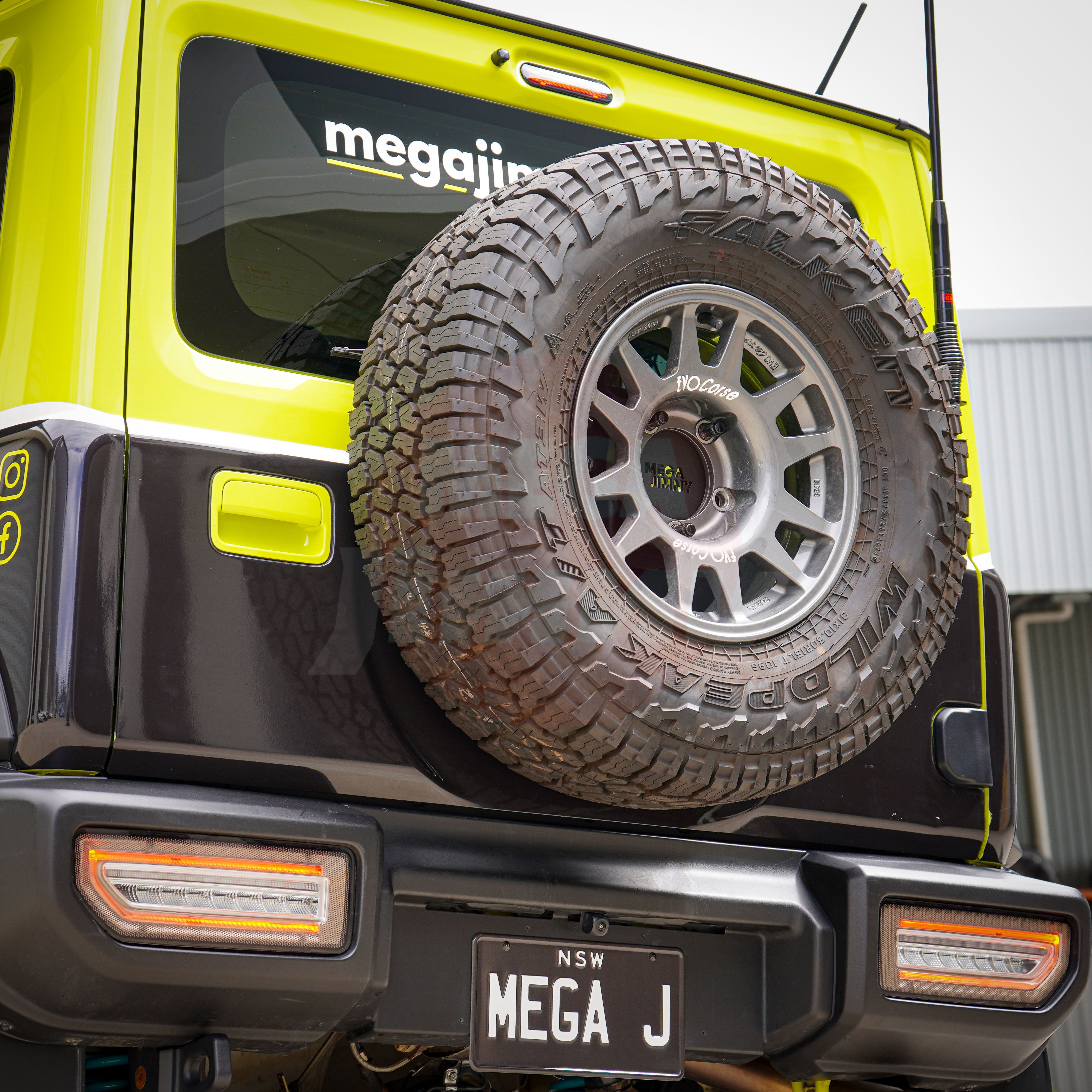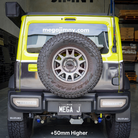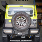 A big issue with fitting larger tyres to your Jimny is that the spare tyre often sits lower and lower, obscuring the number plate below - which in many places in the world is illegal which we've seen will often result in fines from the Police/failed yearly registration inspections.