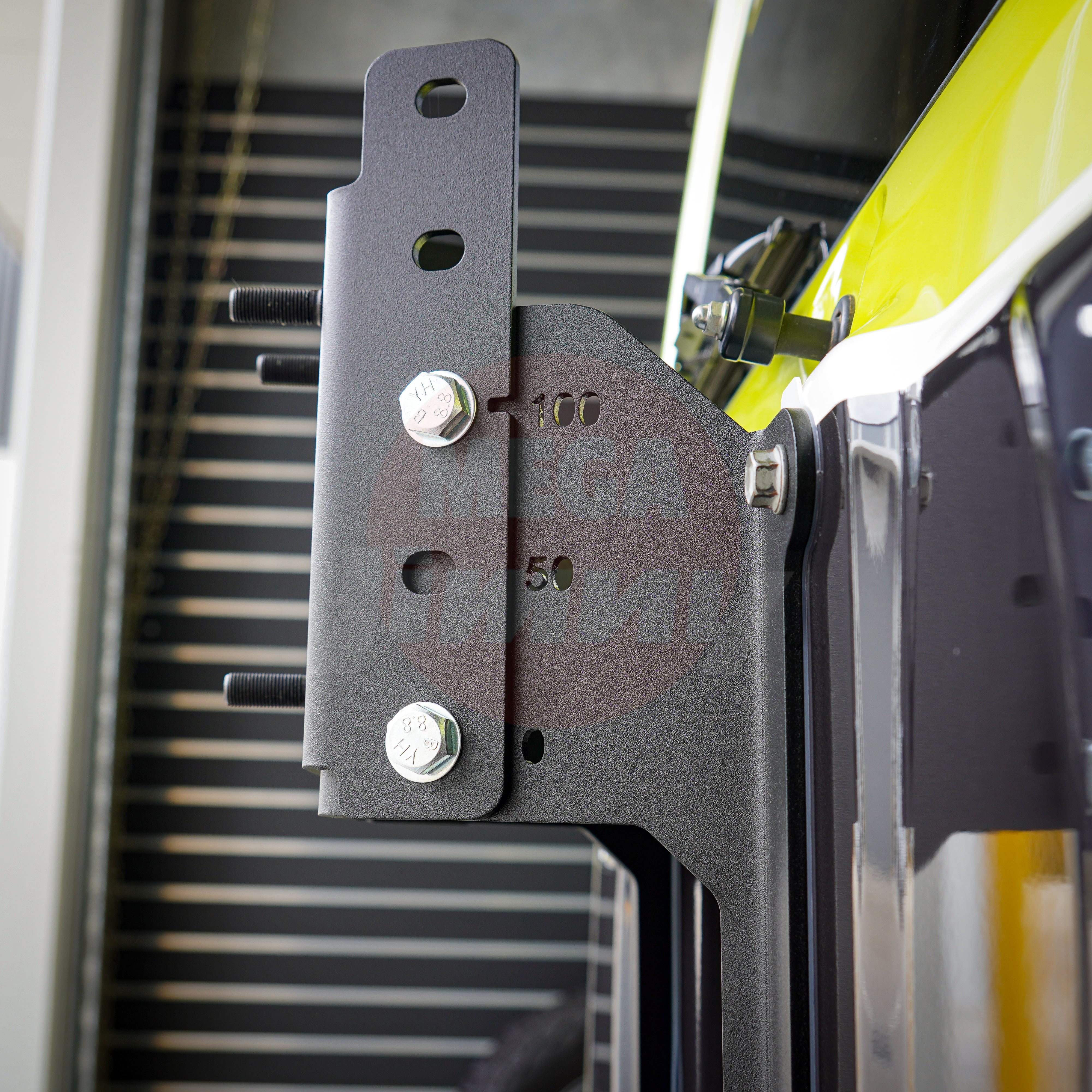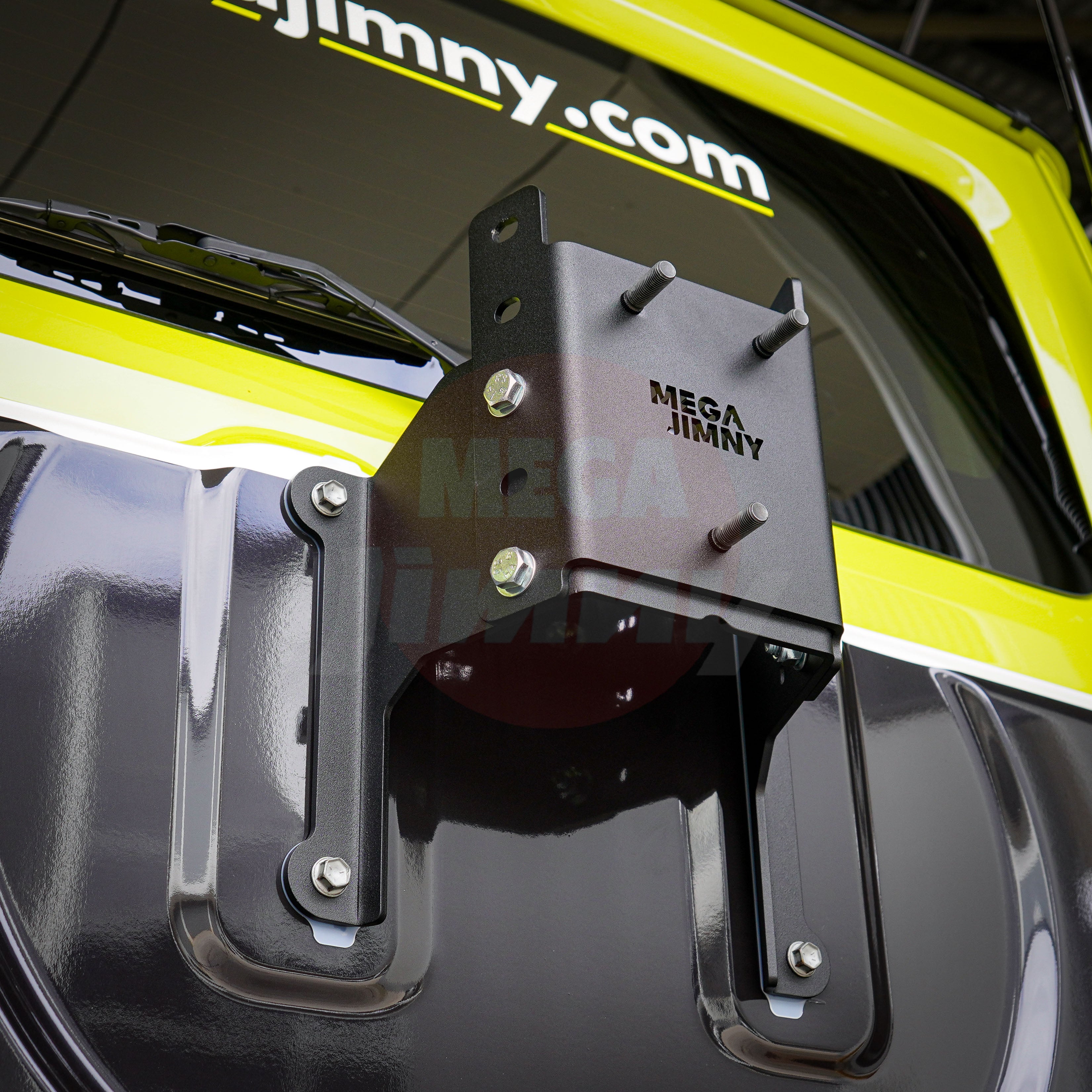 Our mounts have absolutely zero flex or movement in them. They are far stronger than the OEM pressed 2mm thick metal mounts are. We've also designed them to be pitched at the perfect angle, as the Jimny's factory tailgate is not directly straight down.