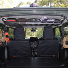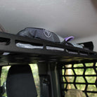 The TLR Products Storage Shelf is compatible with the OEM cargo barrier and does not obstruct the use of the rear-view mirror.